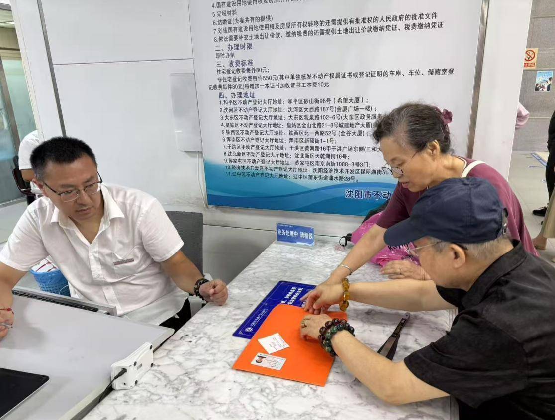 江先生和家人在沈阳市不动产登记中心办理房产证。办理单位供图